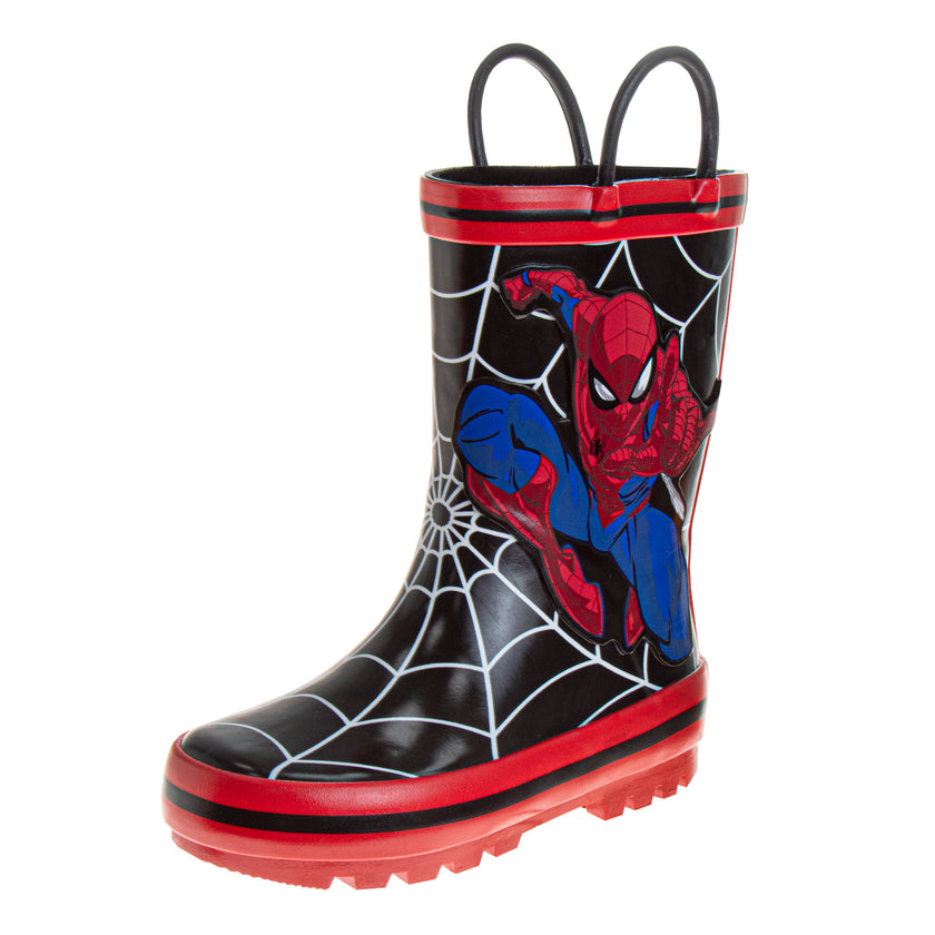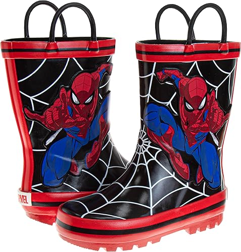 Botas de lluvia impermeables con tirador fácil de tirar para niños de Spiderman (para bebés y niños pequeños)
